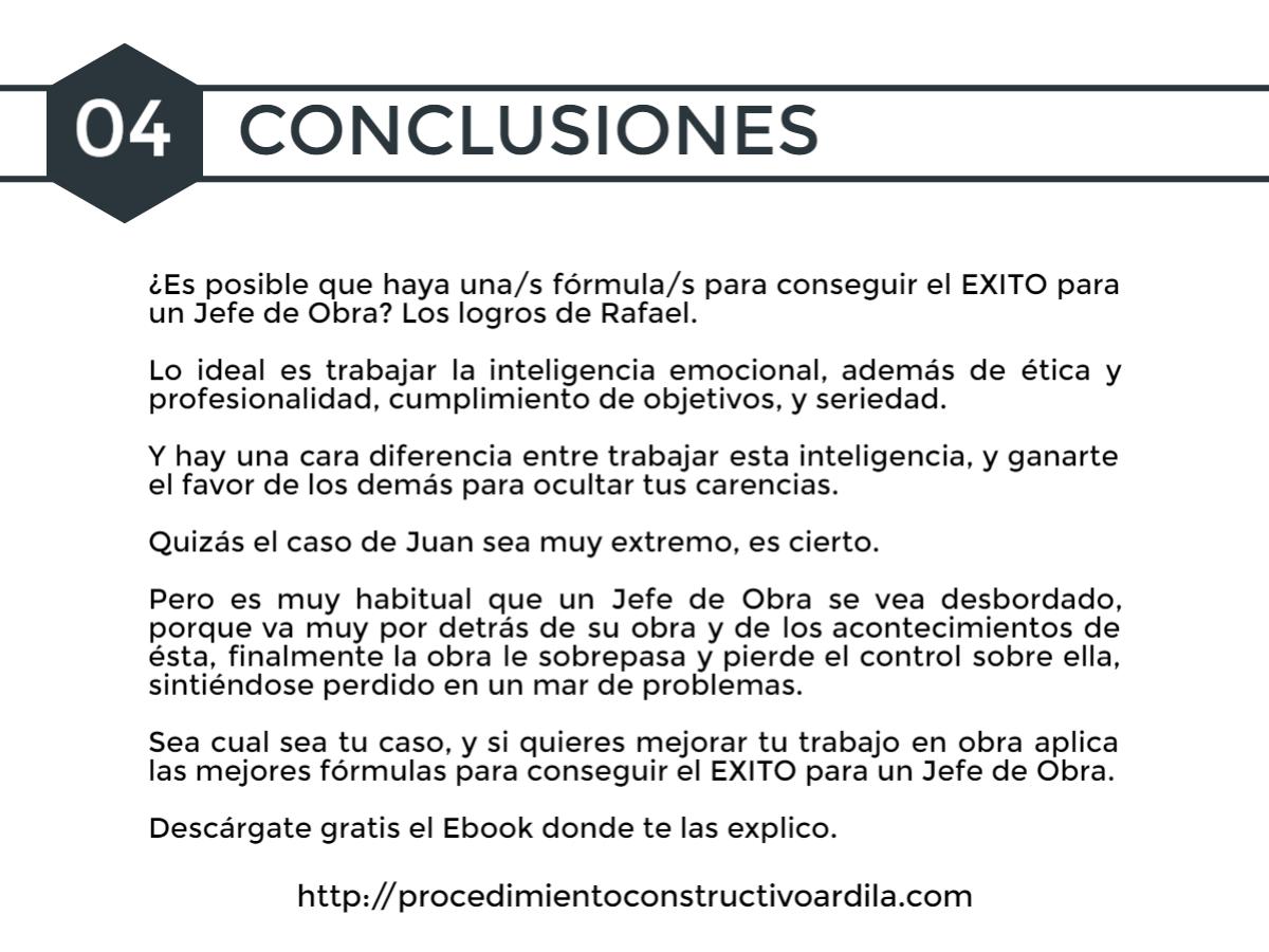 Desde luego muy distante de obtener el EXITO para un Jefe de Obra.