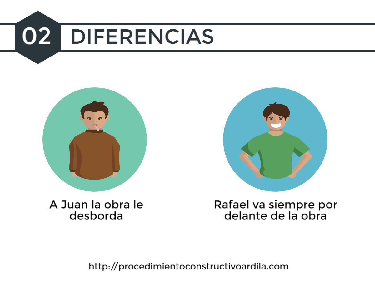 Imagínate que Juan, es un Jefe de Obra, no muy exitoso y que Rafael es un Jefe de Obra con éxito. Déjame que te cuente lo diferente de su función en obra en su día a día. Cómo se aleja uno del EXITO para un Jefe de Obra, y cómo se acerca el segundo al EXITO para un Jefe de Obra: